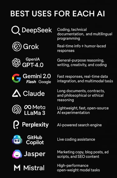 Why: It’s integrated with X (Twitter), so it’s snappy with live data and sarcastic, Elon-style wit.